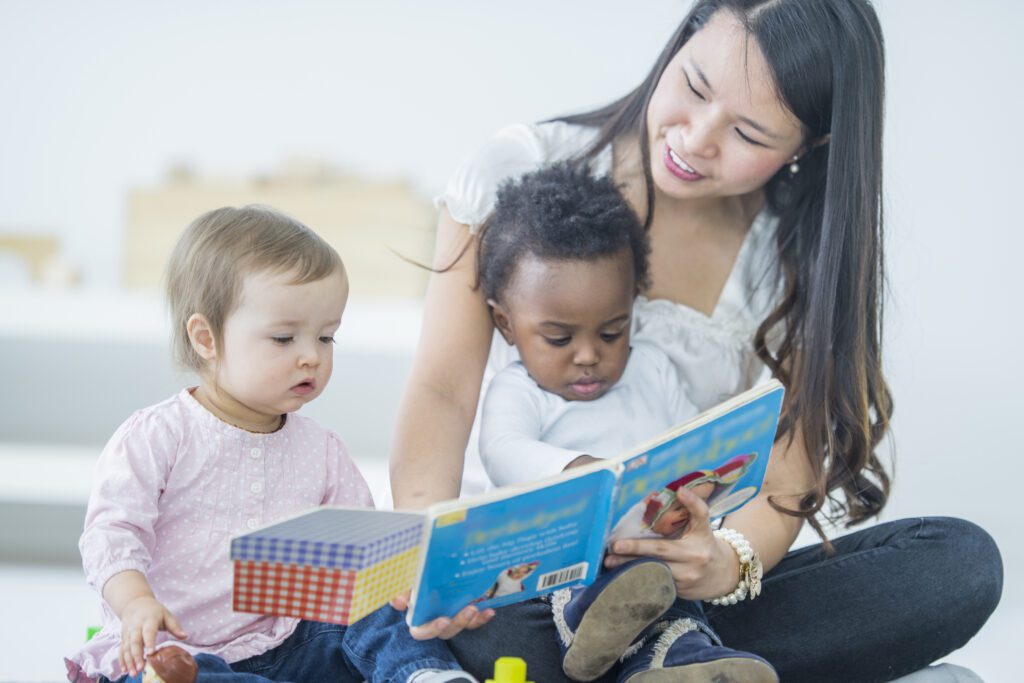All children benefit from books and early literacy experiences. For these ages, we know that colorful, sturdy books that can easily be cleaned and sanitized are best for inspiring an interest in snuggling close and looking at interesting images and hearing captivating stories. The Infant and Toddler curriculums each feature 12 beautiful, bilingual (English and Spanish), baby-proof books by Barefoot Books. These books feature simple captions and rhymes to support children’s language development. Characters and children featured in the books represent diverse cultural backgrounds and abilities.