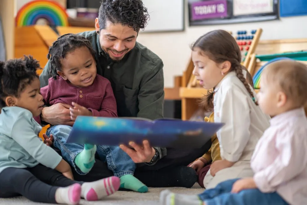 Consider reading books aloud and encouraging toddlers to respond to engaging stories for a large-group activity. You can also think about the materials you’ll need for toddlers to engage in safe play outdoors. Then, you can display the items around your classroom, showing children and their families that you’ve created an environment that considers the toddlers’ best interests.