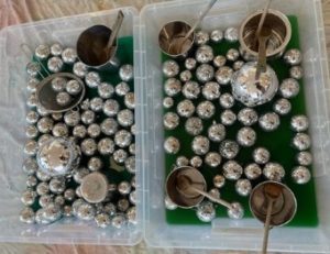 For example, after implementing the Balls study for several years, a teacher acquires a large collection of metallic balls through a community donation. She decides to incorporate this new collection into classroom experiences and interest areas for her upcoming implementation of the Balls study. One way she offers the material is by pairing the collection with spoons, containers, and strainers at the water table. The teacher ensures she listens carefully as children play to document their thinking.