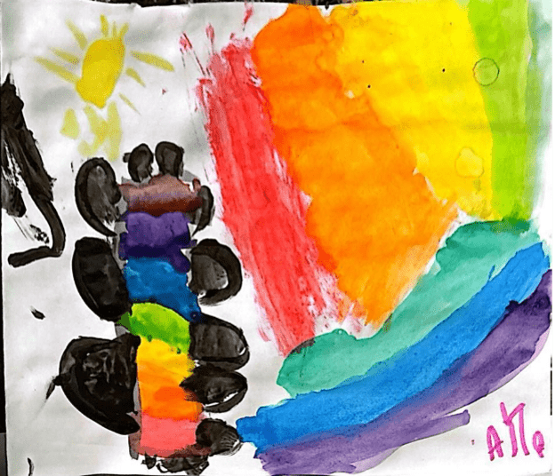 Vague: Ayla described her painting as a picture of a rainbow and a caterpillar (7b, 14a).