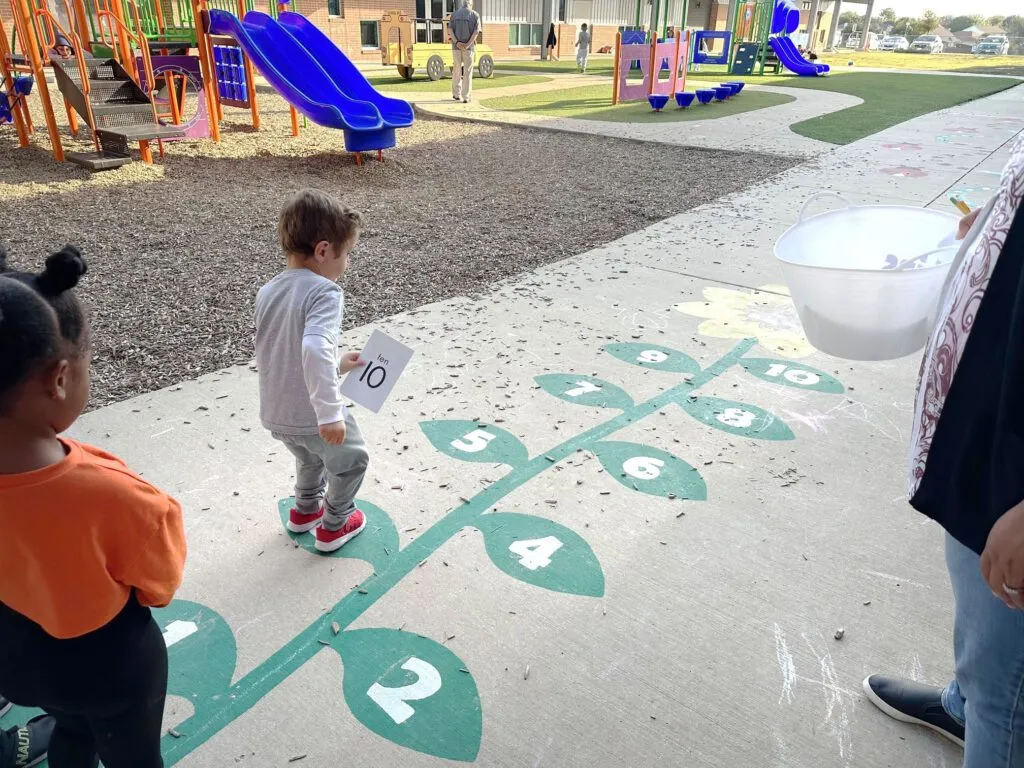 - prompt an authentic experience with math by having the children count how many children are present each day,