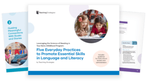 In this e-book, we discuss five everyday practices that intentionally promote the essential skills in language and literacy that serve as the foundation for later reading instruction—all within a developmentally appropriate, comprehensive preschool or pre-K program.