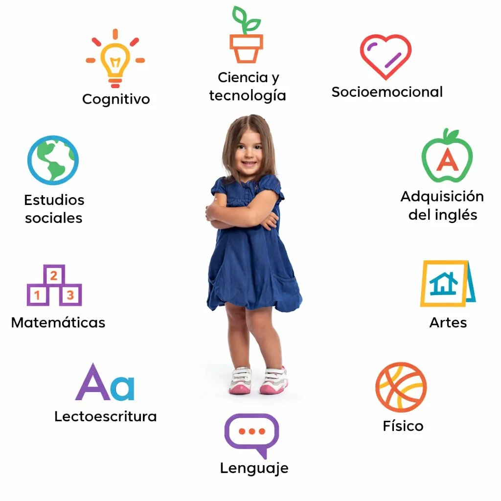 Nuestro enfoque integral basado en la investigación garantiza la preparación para el kindergarten en todas las áreas de desarrollo y aprendizaje: lenguaje, lectoescritura, matemáticas, socioemocional, físico, cognitivo, estudios sociales, ciencia y tecnología, artes y adquisición del idioma inglés.
