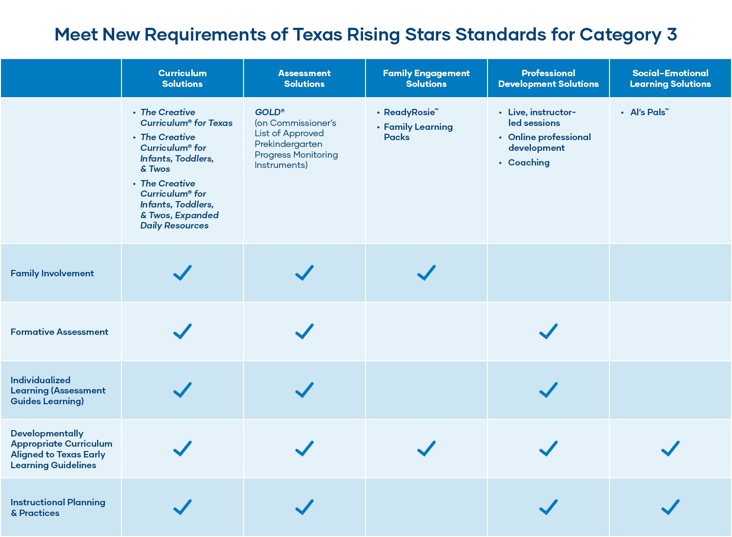 Discover a research-based, whole-child digital and print curriculum Pre-K that includes dynamic planning and teaching; digital curriculum resources; a robust, digital children’s library of eBooks; and family engagement activities and tools. The Creative Curriculum for Texas is an amazing tool for Texas educators, but don’t take our word for it.